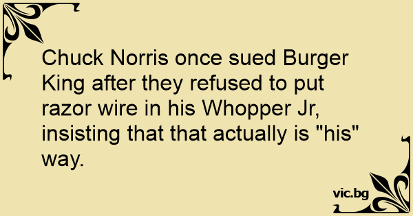 Chuck Norris once sued Burger King after they refused to put razor wire in his Whopper Jr, insisting that that actually is "his" way.