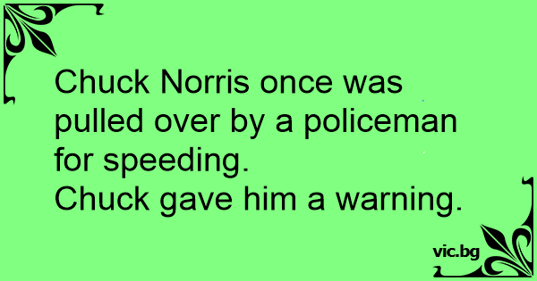 Chuck Norris once was pulled over by a policeman for speeding.