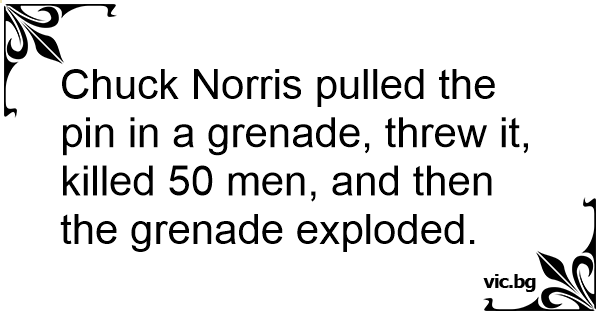 Chuck Norris pulled the pin in a grenade, threw it, killed 50 men, and then the grenade exploded.