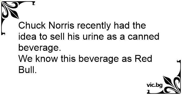 Einmal ist Chuck Norris auf die Idee gekommen seinen Urin in Dosen abzufüllen. Heute nennt man es Red Bull.
