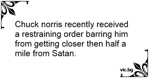 Chuck norris recently received a restraining order barring him from getting closer then half a mile from Sатаn.