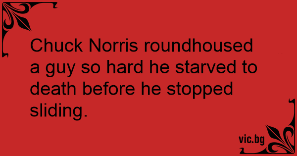 Chuck Norris roundhoused a guy so hard he starved to death before he stopped sliding.