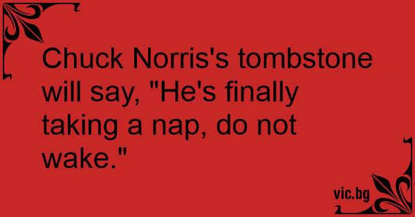 Chuck Norris's tombstone will say, "He's finally taking a nap, do not wake."