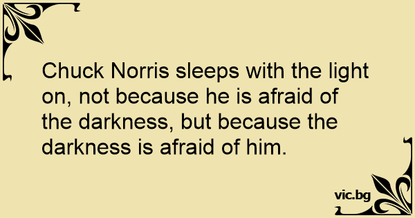 Chuck Norris sleeps with the light on, not because he is afraid of the darkness, but because the darkness is afraid of him.