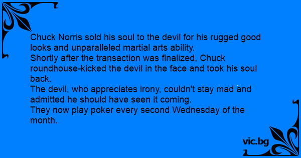 Chuck Norris sold his soul to the devil for his rugged good looks and unparalleled martial arts ability.
