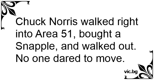 Chuck Norris walked right into Area 51, bought a Snapple, and walked out.