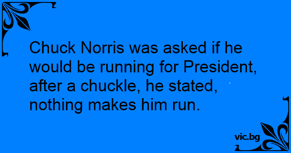 Chuck Norris was asked if he would be running for President, after a chuckle, he stated, nothing makes him run.