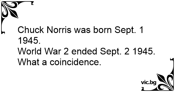 Чак Норрис родился 6 мая 1945 года. Германия сдалась 7 мая 1945 года. Совпадение? Я так не думаю