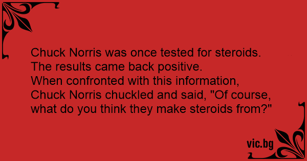When confronted with this information, Chuck Norris chuckled and said, "Of course, what do you think they make steroids from?"