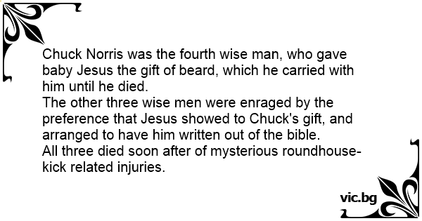 Chuck Norris was the fourth wise man, who gave baby Jesus the gift of beard, which he carried with him until he died.