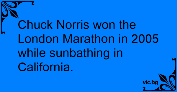 Chuck Norris won the London Marathon in 2005 while sunbathing in California.