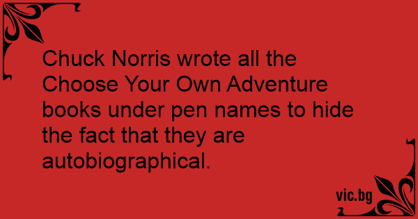 Chuck Norris wrote all the Choose Your Own Adventure books under pen names to hide the fact that they are autobiographical.