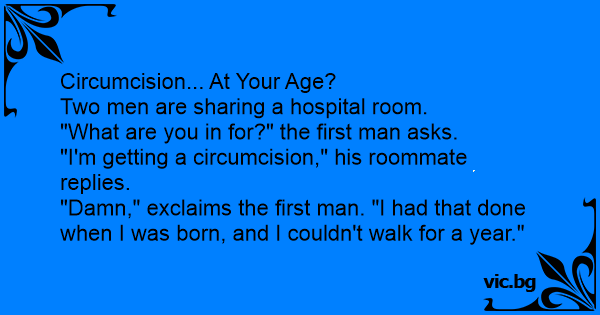 "Dамn," exclaims the first man. "I had that done when I was born, and I couldn't walk for a year."
