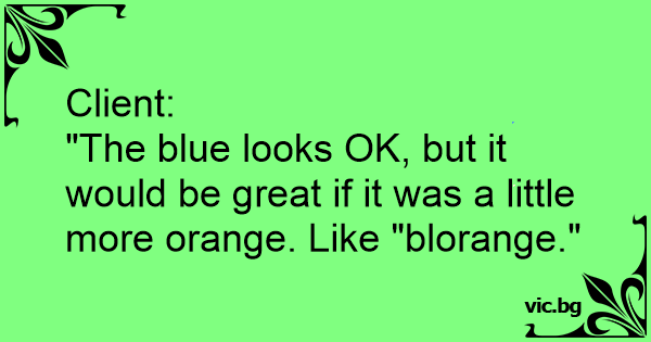 "The blue looks OK, but it would be great if it was a little more orange. Like "blorange."
