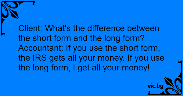 Accountant: If you use the short form, the IRS gets all your money. If you use the long form, I get all your money!