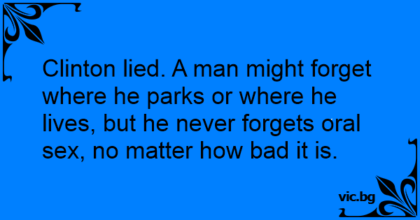 Clinton lied. A man might forget where he parks or where he lives, but he never forgets оrаl sеx, no matter how bad it is.