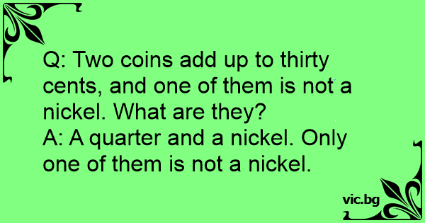 Q: Two coins add up to thirty cents, and one of them is not a nickel. What are they?