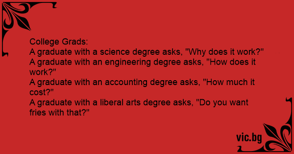 A graduate with a liberal arts degree asks, "Do you want fries with that?"