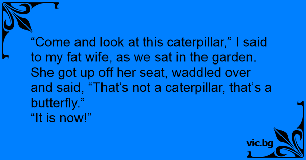 “Come and look at this caterpillar,” I said to my fат wife, as we sat in the garden.