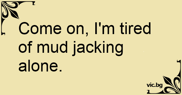 Come on, I'm tired of mud jacking alone.