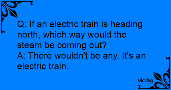 Q: If an electric train is heading north, which way would the steam be coming out?