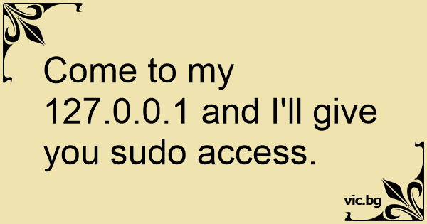 Come to my 127.0.0.1 and I'll give you sudo access.
