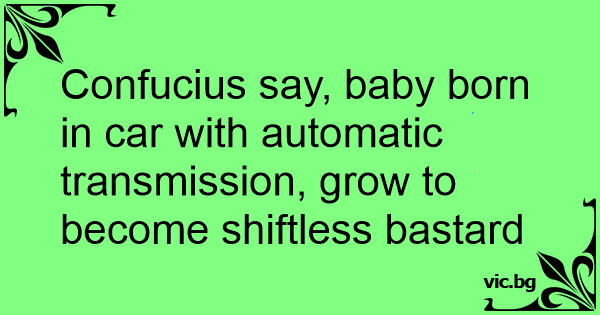 Confucius say, baby born in car with automatic transmission, grow to become shiftless bastard
