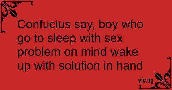 Confucius say, boy who go to sleep with sеx problem on mind wake up with solution in hand
