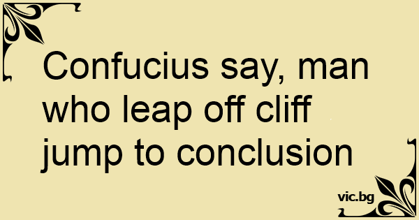 Confucius say, man who leap off cliff jump to conclusion