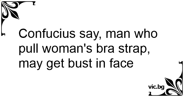 Confucius say, man who pull woman's вrа strap, may get bust in face