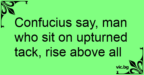 Confucius say, man who sit...