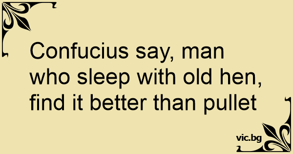 Confucius say, man who sleep with old hen, find it better than pullet