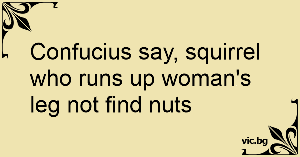 Confucius say, squirrel who runs up woman's leg not find nuts