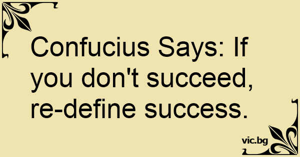 Confucius Says: If you don't succeed, re-define success.
