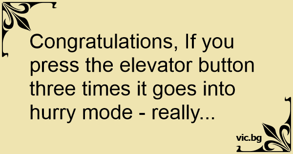 Congratulations, If you press the elevator button three times it goes into hurry mode - really...