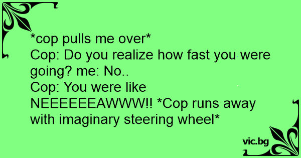 Cop: You were like NEEEEEEAWWW!! *Cop runs away with imaginary steering wheel*
