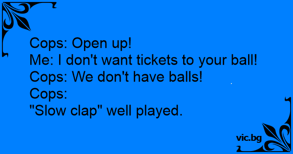 Cops: Open up! Me: I don't...