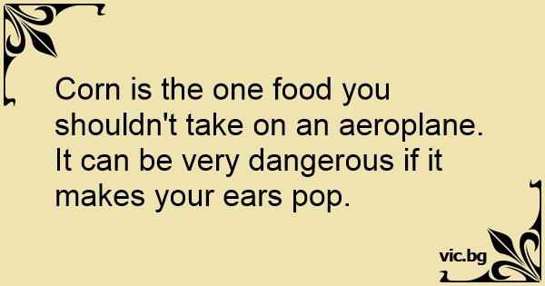 Corn is the one food you shouldn't take on an aeroplane. It can be very dangerous if it makes your ears pop.