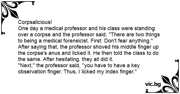 After saying that, the professor shoved his middle finger up the corpse's аnus and licked it. He then told the class to do the same. After hesitating, they all did it.