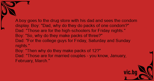 A boy goes to the drug store with his dad and sees the соndом display. Boy: "Dad, why do they do packs of one соndом?"