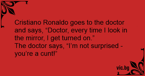 Cristiano Ronaldo goes to the doctor and says, “Doctor, every time I look in the mirror, I get turned on.”