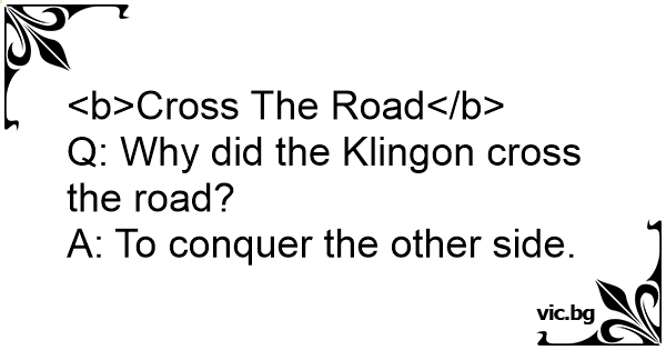 Q: Why did the Klingon cross the road?