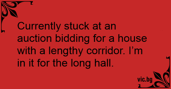 Currently stuck at an auction bidding for a house with a lengthy corridor. I’m in it for the long hall.