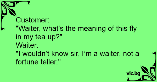 Келнер, в супата ми има муха, бихте ли ми казали какво означава това?!