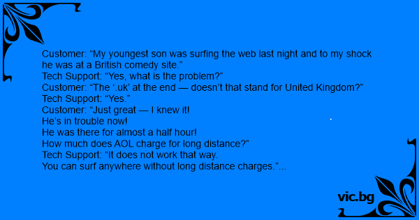 Customer: “Well, AOL said you were correct; no long distance charge for overseas web sites.