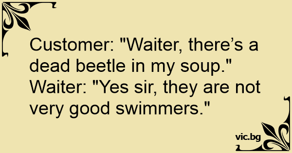 Customer: "Waiter, there’s a dead beetle in my soup."