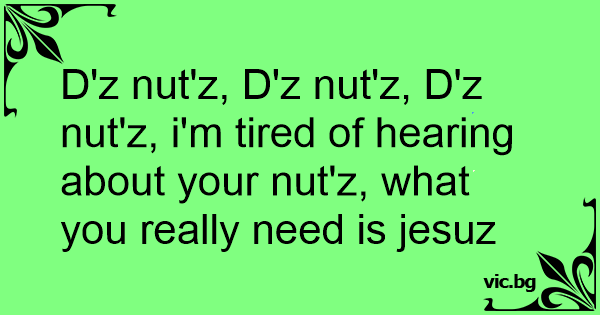 D'z nut'z, D'z nut'z, D'z nut'z, i'm tired of hearing about your nut'z, what you really need is jesuz