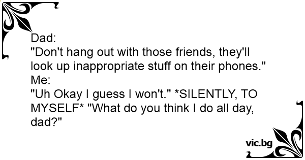 "Uh Okay I guess I won't." *SILENTLY, TO MYSELF* "What do you think I do all day, dad?"