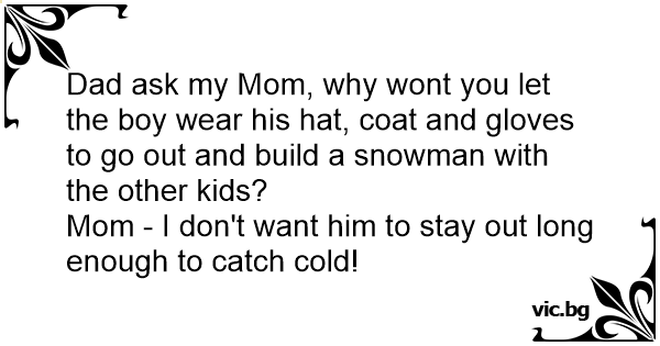 Dad ask my Mom, why wont you let the boy wear his hat, coat and gloves to go out and build a snowman with the other kids?