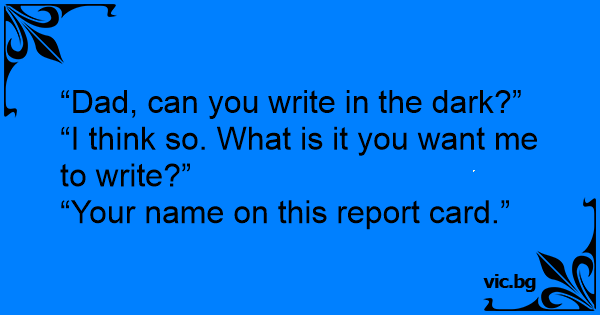- Babacığım, karanlıkta yazı yazabilir misin? - Sanırım yazabilirim. Ne yazmamı istersin? - Karneme adını yazıp imza atar mısın!